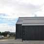 切妻2階建て、外壁には耐久性に優れた素材として伝統的な焼杉を使用。