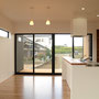 畑風景の広がる場所に建てられたこの住宅は市街地を離れ、親世帯の隣地に移住した子世帯