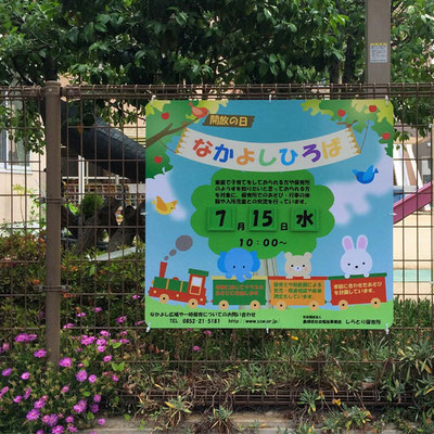 保育所が月に一度、地域に開く日(なかよしひろば)の案内用看板。